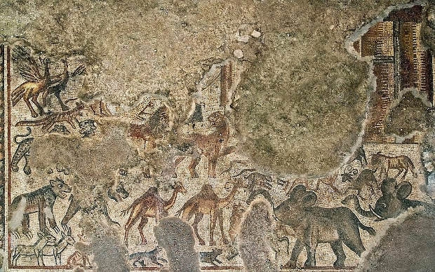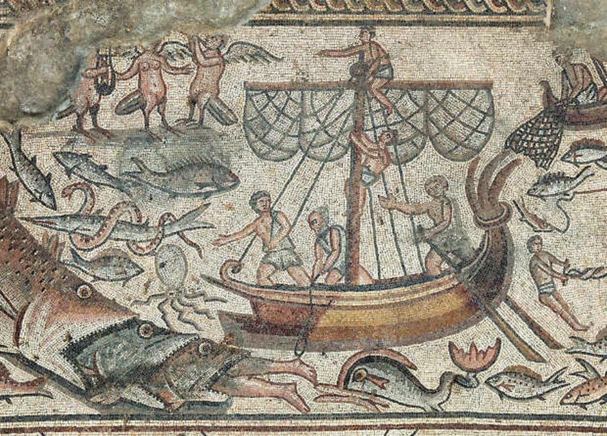 При тщательном рассмотрении выяснилось, что на мозаике изображен Ноев ковчег и пророк Иона, которого пожирает рыба. Ученые предполагают, что мозаика была выполнена тоже в V веке н. э.