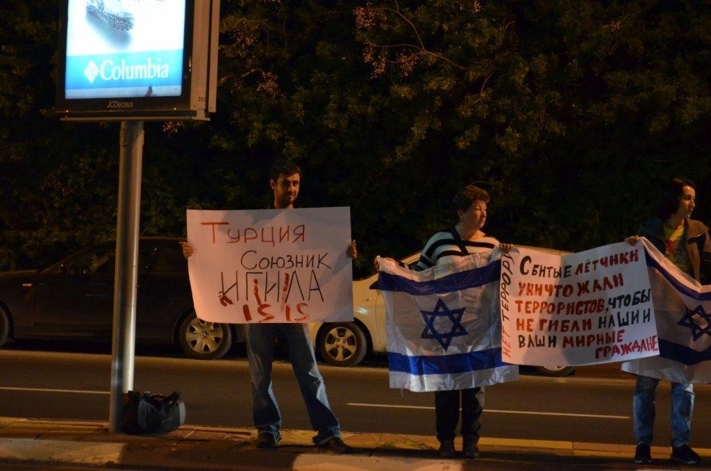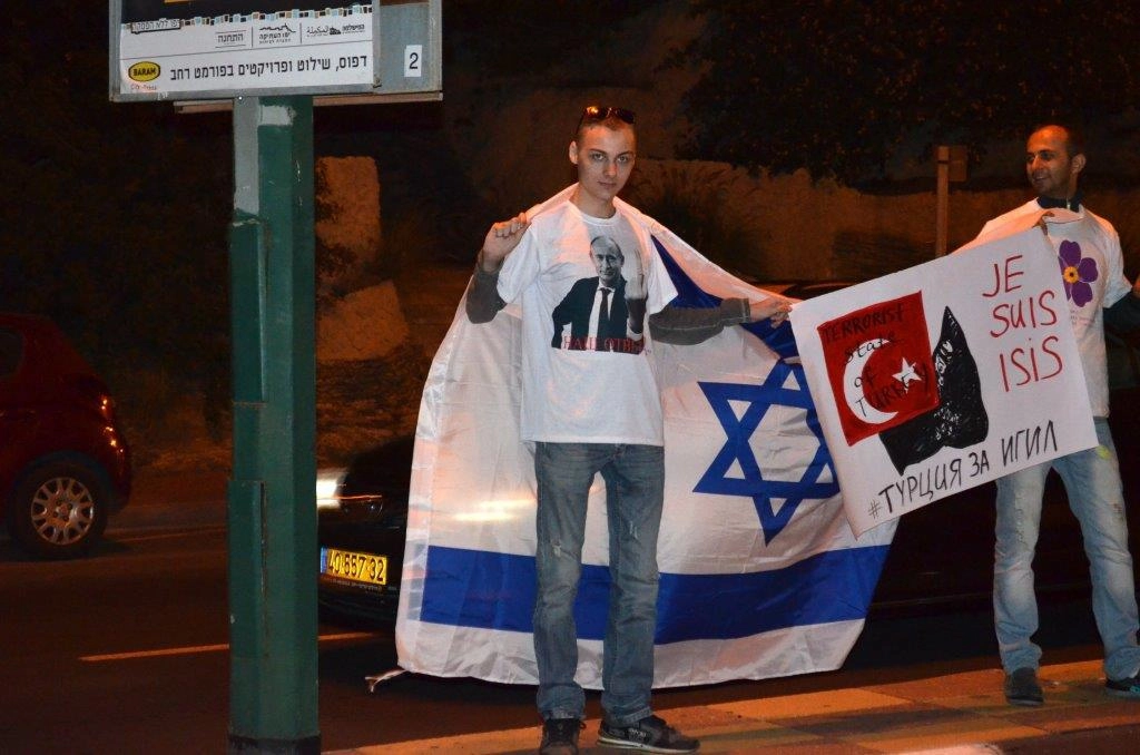 В Израиле прошла акция в поддержку России в борьбе с мировым терроризмом и его пособниками. Митинг состоялся в центре Тель-Авива напротив посольства Турции.