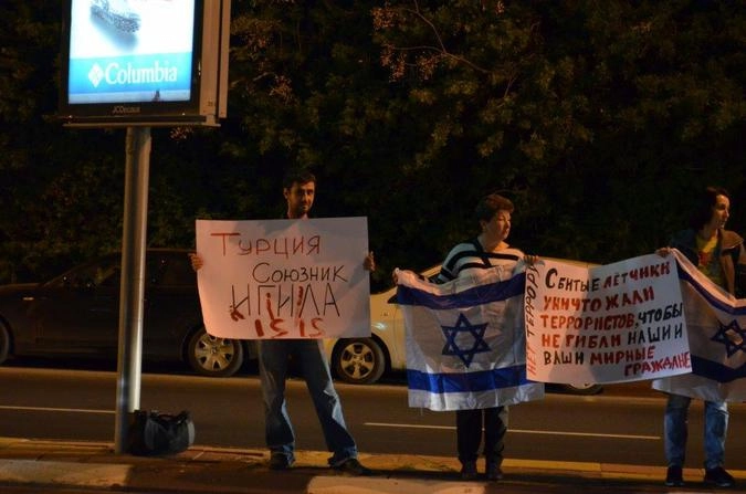 Митингующие потребовали призвать политическое руководство Турции к ответственности за сбитый в небе над Сирией российский бомбардировщик Су-24.