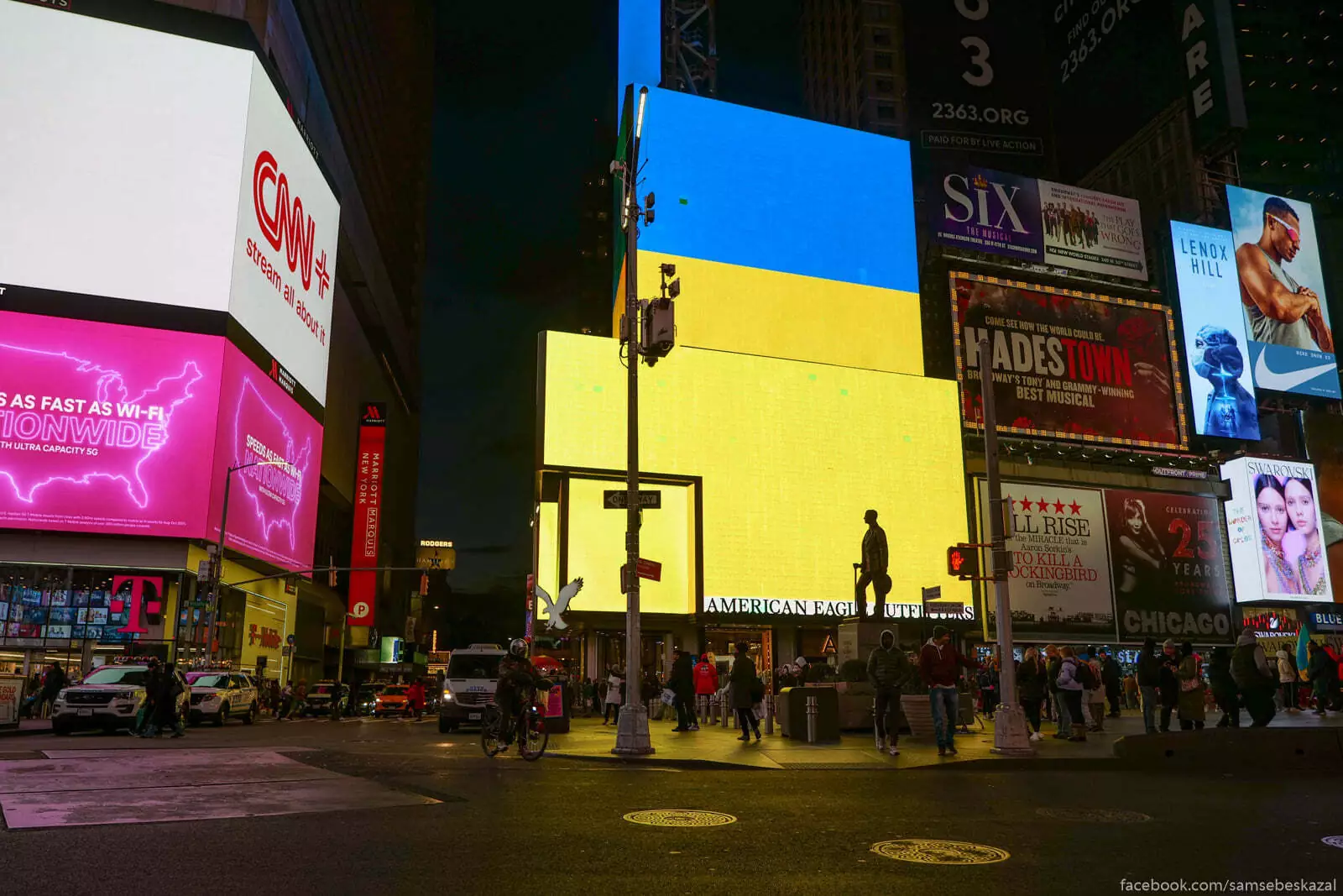 Не могу сказать, что весь Нью-Йорк стал желто-синим, но не заметить украинские флаги, которые теперь висят кажется что повсюду, просто не возможно.