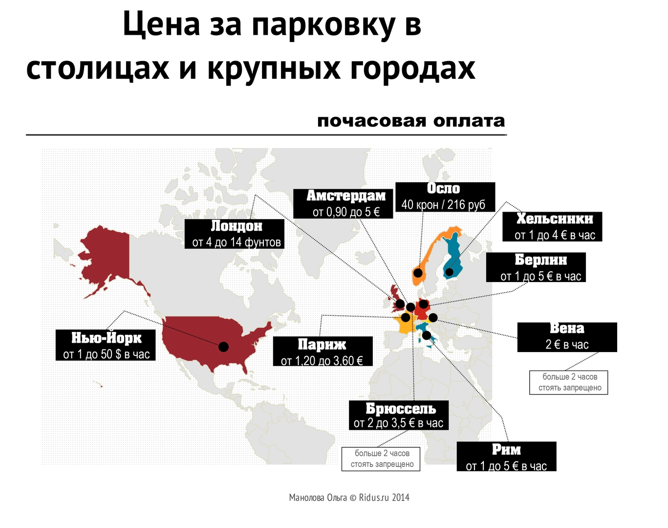 В каких городах мира автопарковки дороже чем в Москве? Инфографика
