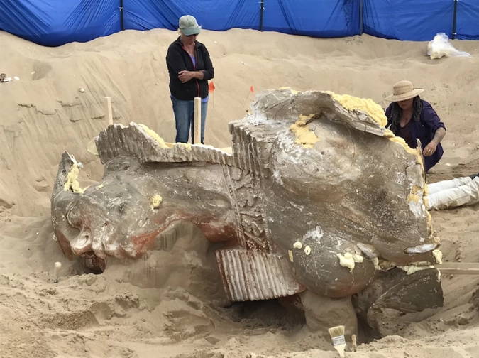 Археологи из центра Гвадалупе-Нипомо обнаружили в песках огромную статую сфинкса, которая была сделана 94 года назад. Сфинкс хорошо сохранился и его терракотовая краска не потеряла своей яркости. Размеры сфинкса внушительны — 1,6 x 1 x 2,4 метра, и по заявлению археологов, статуя практически не разрушилась из-за того, что пролежала все это время в песке.