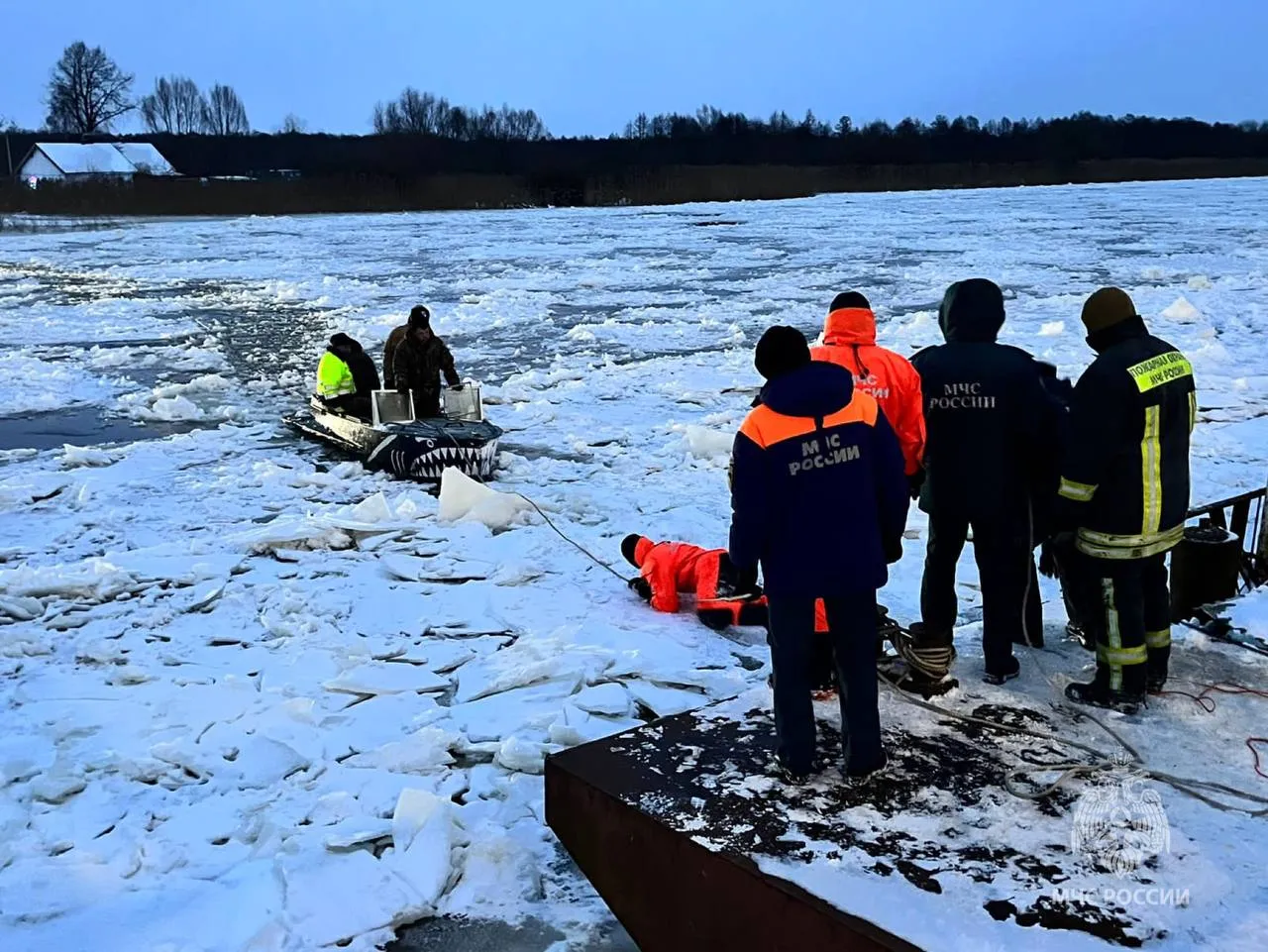 «Чтобы переправить огнеборцев с пожарно-техническим вооружением через реку, сотрудникам МЧС России на плавсредствах пришлось буквально сражаться с потоком льда, ломая его подручными средствами», — говорится в сообщении ГУ МЧС.