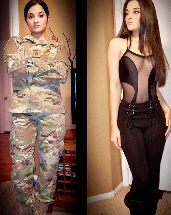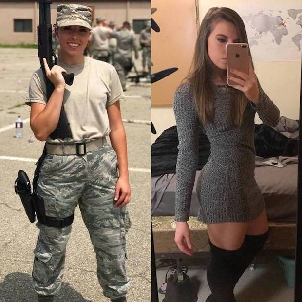 Недавно в Cети был запущен флешмоб среди девушек-военнослужащих, участницы которого фотографировали себя в униформе и в гражданской одежде.