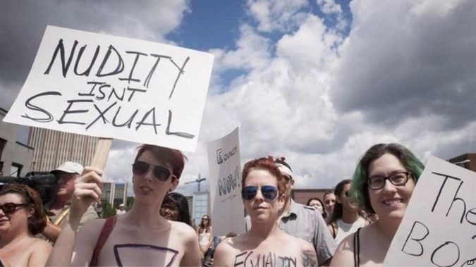 Топлес-марш в городе Уотерлу собрал несколько сотен полуголых девушек и женщин, которые выступают за свободу и равенство полов. Они пронесли по городу плакаты: «Это грудь, а не бомба» и «Нудизм не имеет отношения к сексу», сообщает BBC.