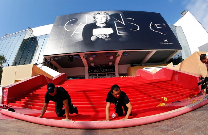 Рабочие разворачивают красную дорожку 65-го Каннского кинофестиваля. © Eric Gaillard/Reuters