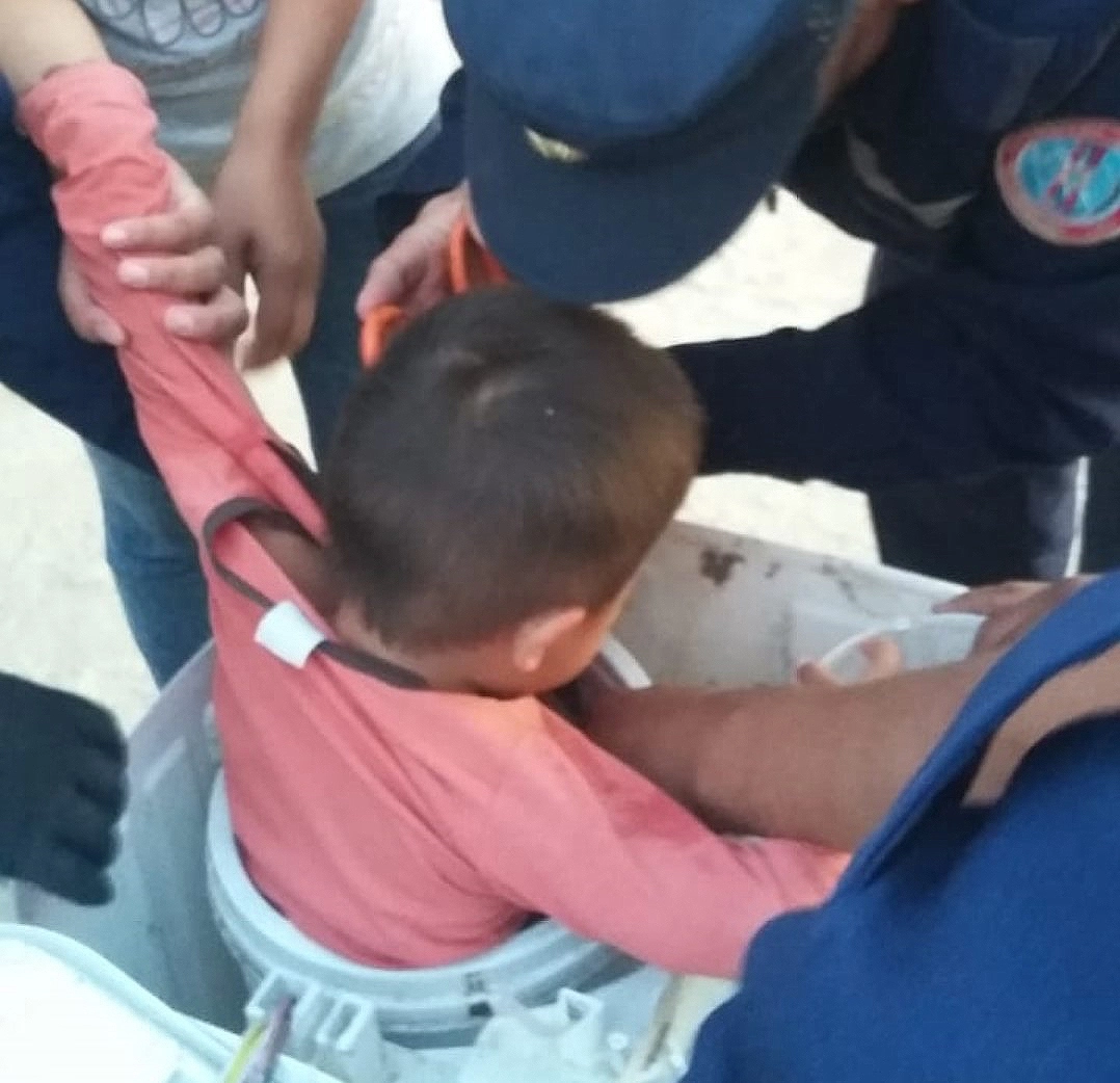 Спасатели разрезали барабан машины ножницами по металлу и освободили ребенка.