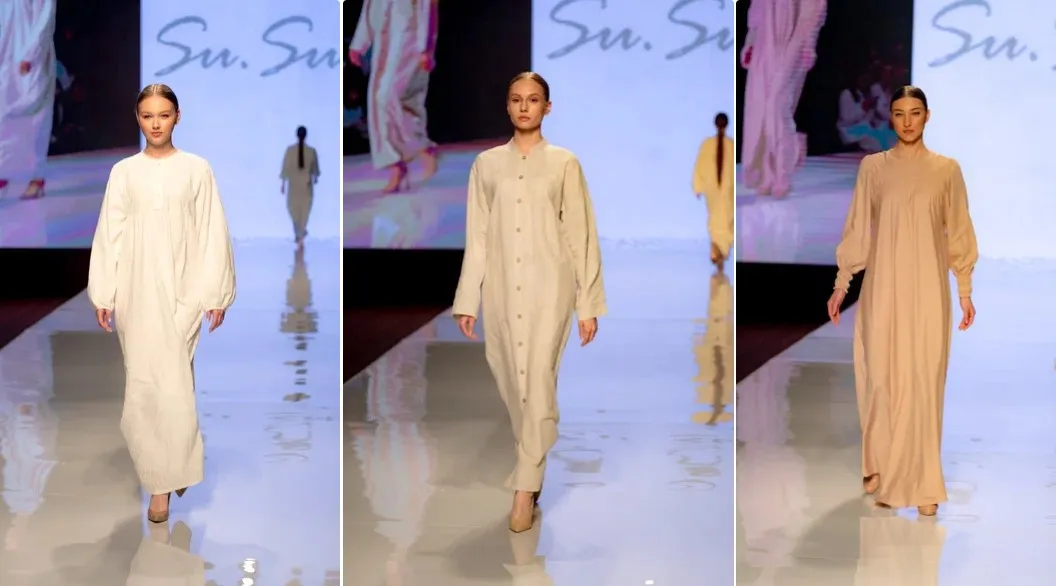 Татарский бренд одежды Su.Su представил на подиуме коллекцию платьев-рубашек, юбок и халатов пастельных оттенков из льна и хлопка. Дизайнер отмечает, что при создании коллекции используются исключительно дышащие, гипоаллергенные ткани, такие как хлопок, лен, тенсель, крапива. А свободные силуэты простого кроя с необычными деталями позволяют чувствовать комфорт в движении.