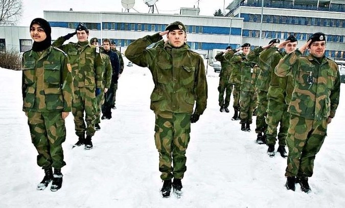 В норвежских вооруженных силах служат по контракту, но комплектуется армия на основе всеобщей воинской обязанности. Предусмотрена также и альтернативная служба, но характерно, что лишь четыре процента призывников выбирают ее. Стоит отметить, Норвегия - первая из стран НАТО сделала обязательной воинскую повинность как для мужчин, так и для женщин.