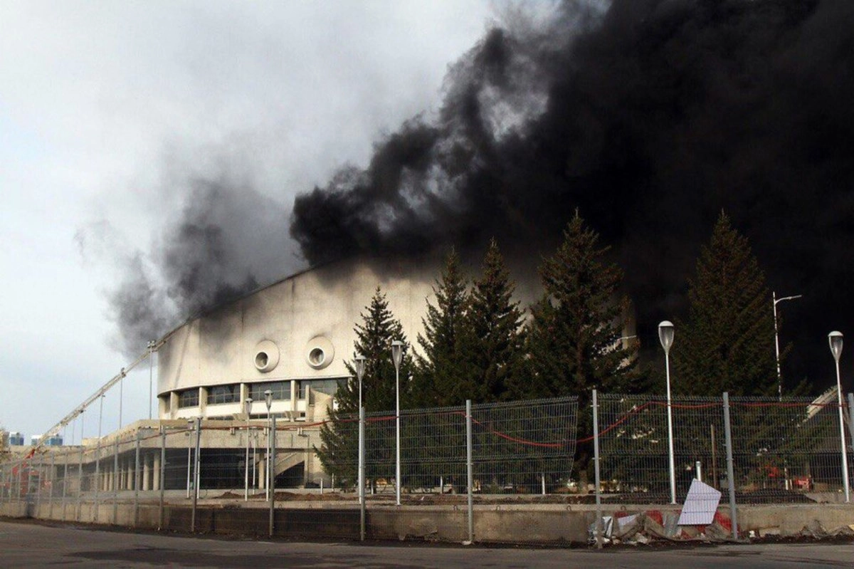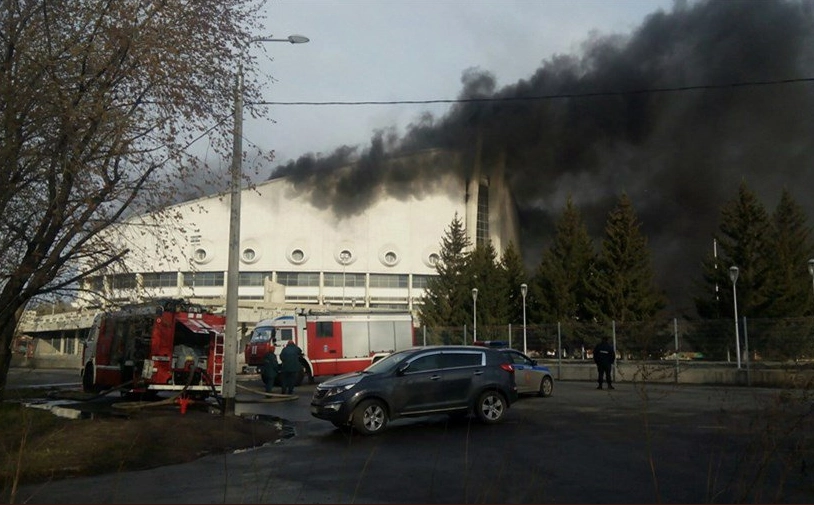 В Красноярске загорелся Дворец спорта имени Ивана Ярыгина