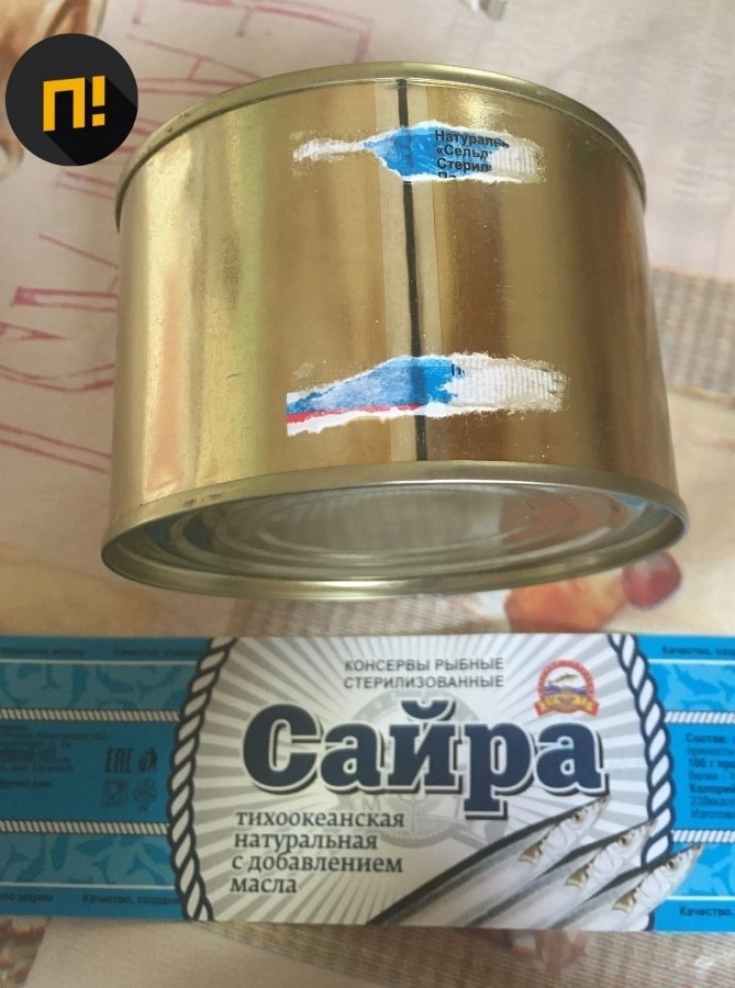 1 июня выдали консервы нам в пайках. Написано «Сайра», а в маркировке на банке указано, что это сельдь. Под этикеткой были обнаружены следы старой этикетки, в самой банке бурда с запахом сельди, — сказала собеседница.