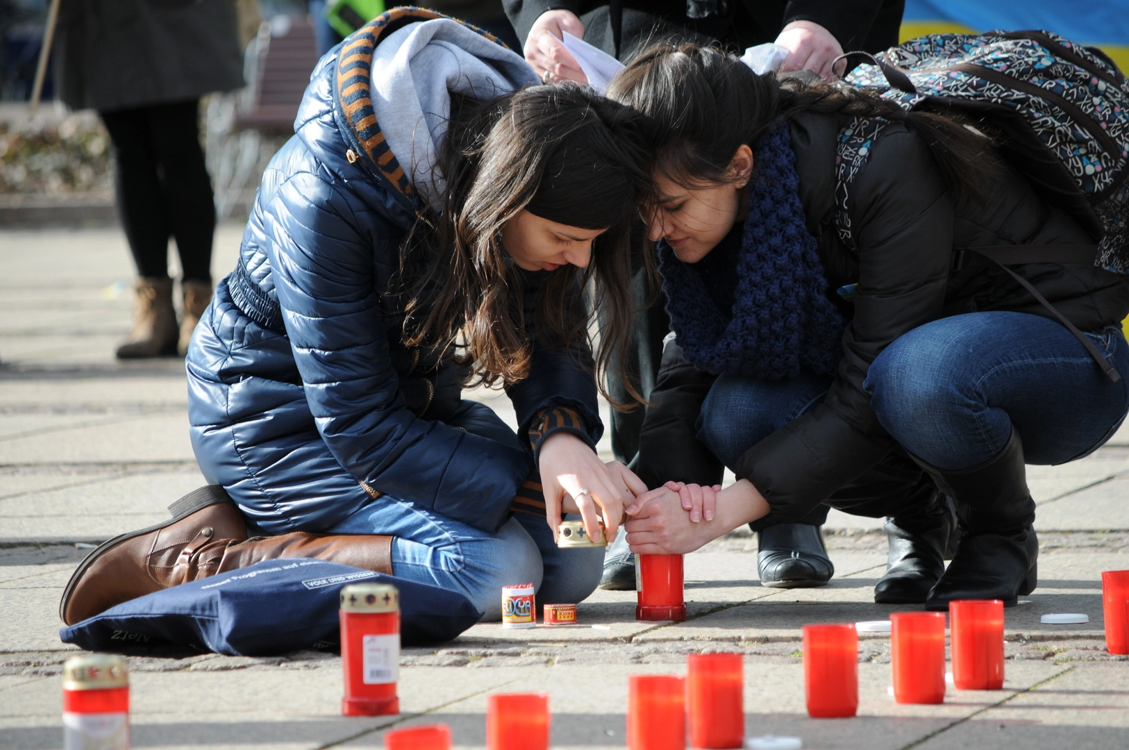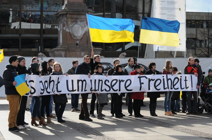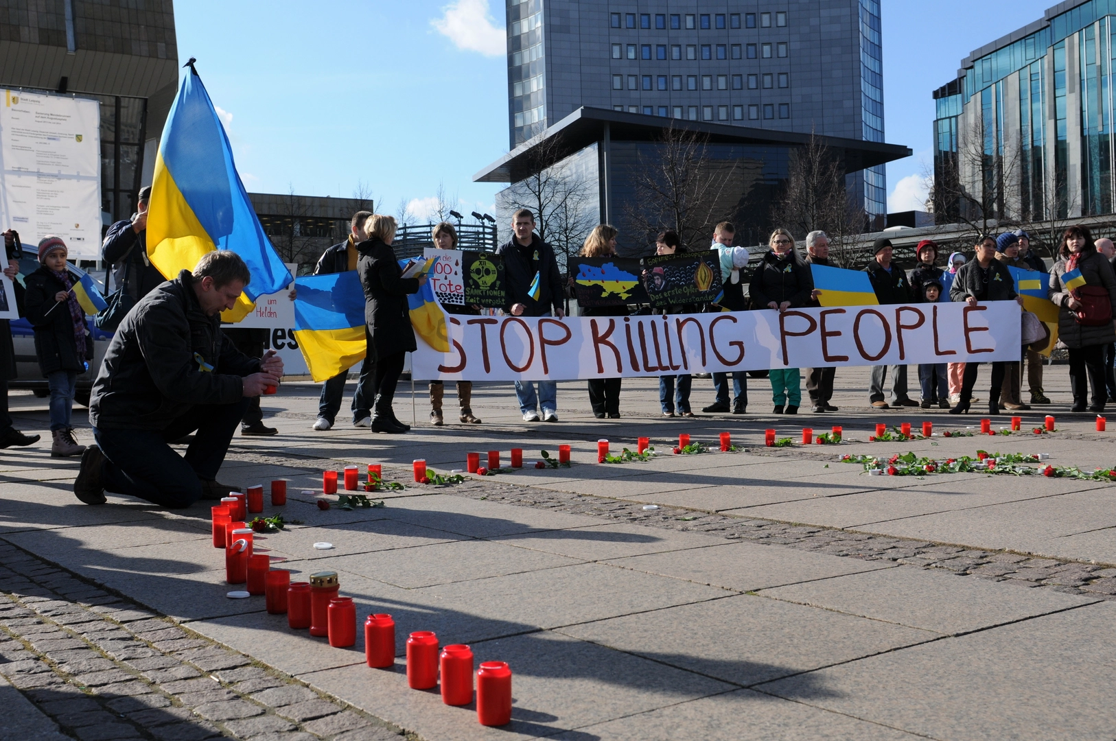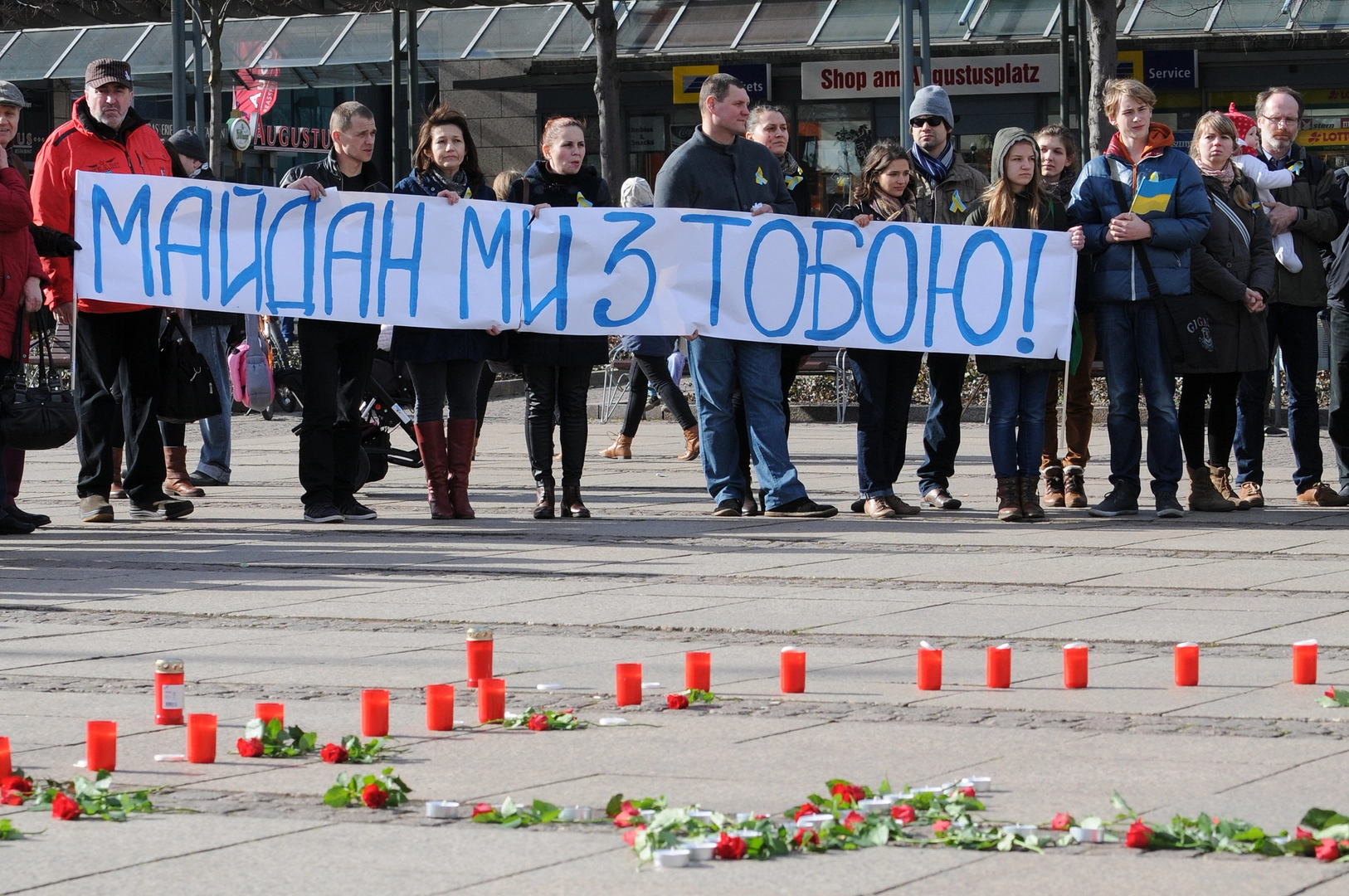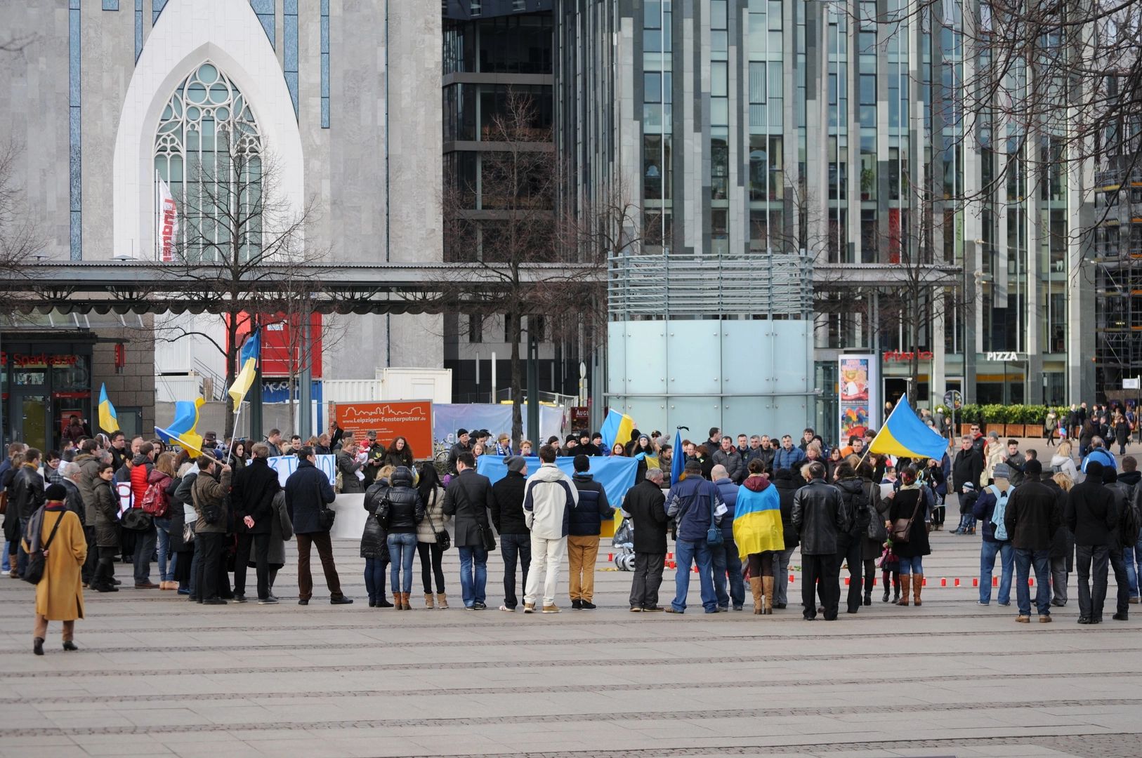 22 февраля в Лейпциге прошла акция солидарности с Майданом. Около 200 человек собрались на площади Августусплац. В основном это были украинцы, живущие в Лейпциге, но также пришли и немцы, и русские. Надписи на плакатах и транспорантах были на немецком, английском и украинском языках. Украинские флаги развевались над головами собравшихся. На одном из плакатов было написано на украинском языке "Майдан, мы с тобой!". Были плакаты с фотографиями, сделанными в дни противостояния на Майдане. В центре площади участники акции выложили из свечей крест. Люди почтили память всех погибших на Украине. Пели украинские песни и, конечно, Гимн Украины. Звучали слова: "Слава Украине. Героям слава".