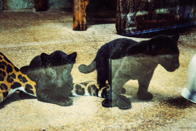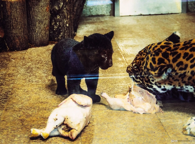 Ягуары Рок и Агнесса вместе с 2007 года, и за это время они уже четыре раза приносили потомство Ленинградскому зоопарку! Последние их котята – два самца черного окраса с еле заметными пятнышками (пошли оба в папу ). Отец находится в соседнем вольере, без доступа к своим. На воле, когда у самки рождаются питомцы, отец на время их покидает.