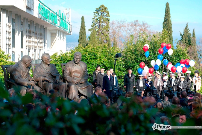 Стоит отметить, что в украинской прессе памятник Ялтинской конференции обозвали монументом Сталину. Ошибочность такого восприятия очень чётко разъяснил Сергей Нарышкин: «Это — памятник не Сталину. Это — памятник событию. Возвеличивания Сталина тут нет».