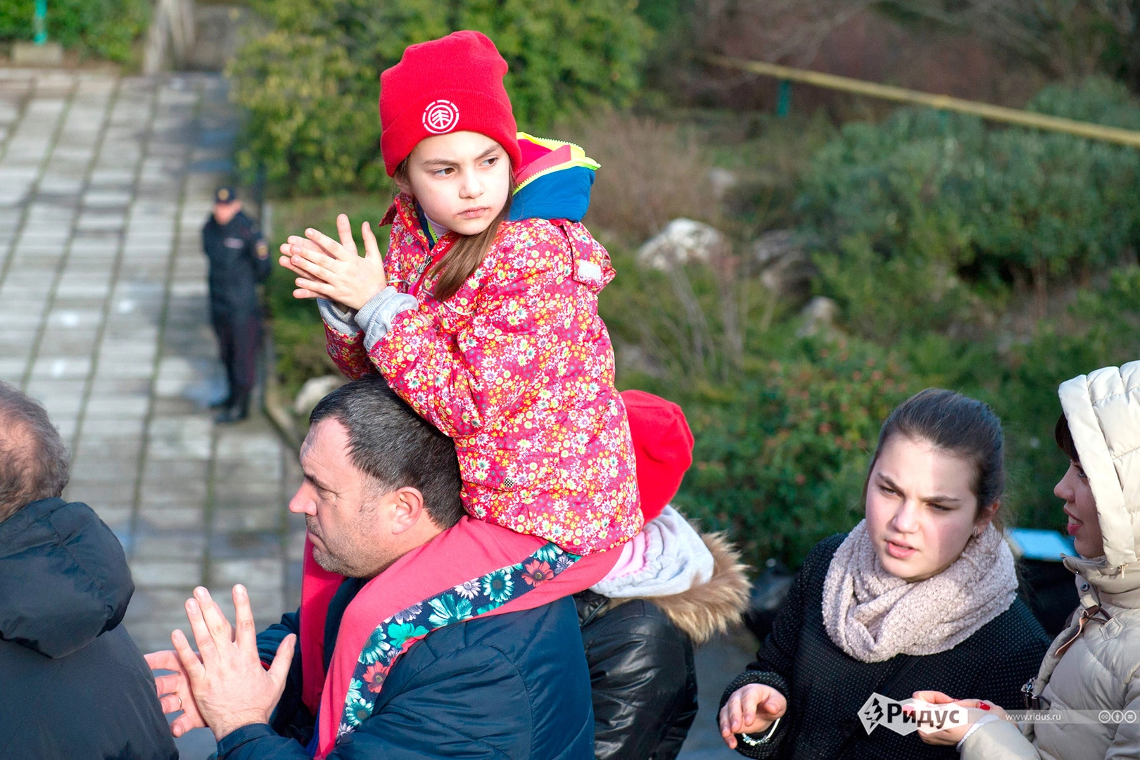 Во-первых, как только гости собрались у монумента, дождливые небеса разверзлись, и над Ливадийским дворцом засияло солнце. Потом детишки, утомившись ждать почётных гостей, начали переминаться с ноги на ногу, и случайно выпустили несколько шаров: белый, синий и красный. Получив нагоняй от сопровождавшей их дамы, мальчишки с девчонками случайно упустили еще три шара, и снова в таком же порядке.