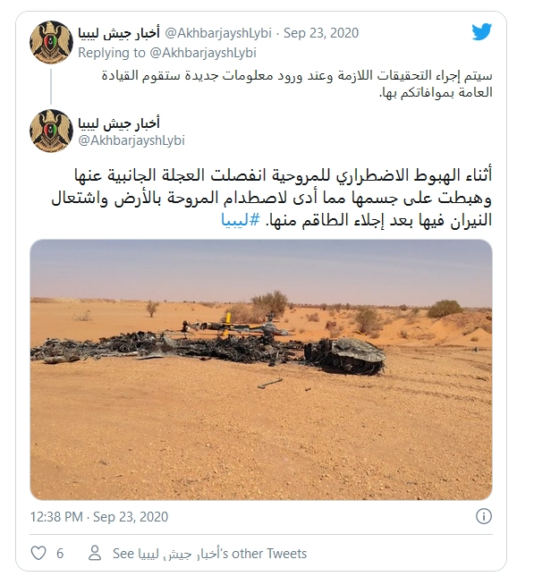 Сегодня из Ливии пришло сообщение о ЧП. Вблизи города Сукна экстренно посадили военный вертолёт ЛНА. Согласно отчёту Ливийской национальной армии, инцидент обошелся без жертв.