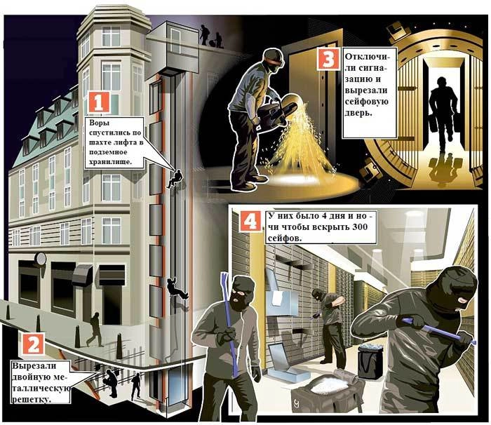 Примечательно, что сотрудники хранилища обнаружили кражу только во вторник утром. У грабителей было четыре дня, чтобы выносить из здания ценности.