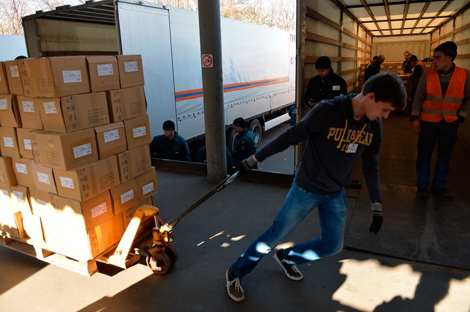 «Более 40 грузовых автомобилей прибыли в Луганск. Они привезли более 400 тонн гуманитарных грузов, преимущественно стройматериалов и продуктов питания», — сообщил ТАСС замначальника Национального центра управления в кризисных ситуациях МЧС России Олег Воронов.