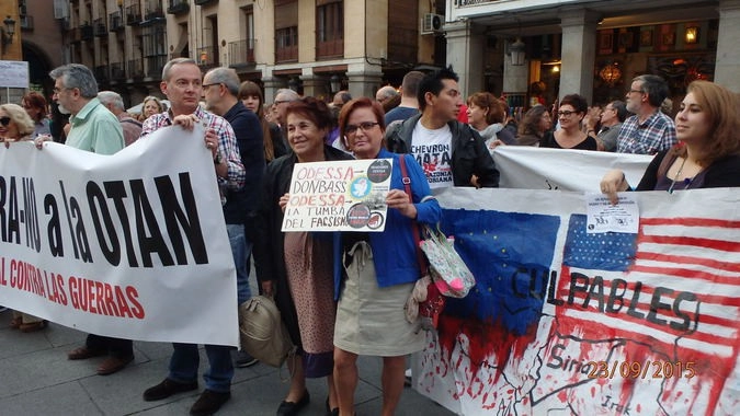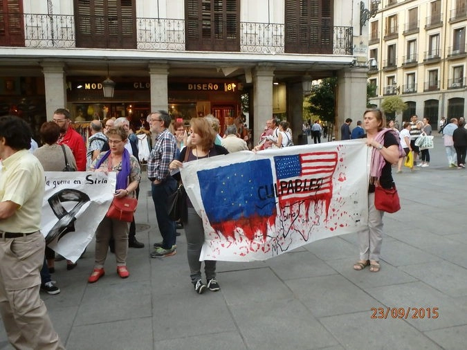 К полутора сотням активистов из Испании присоединились представители Сирии, Ирана, Боливии, Украины и Ливии — стран более других страдающих от неутомимого желания США убивать мирных людей руками своих марионеток, сообщают организаторы акции: