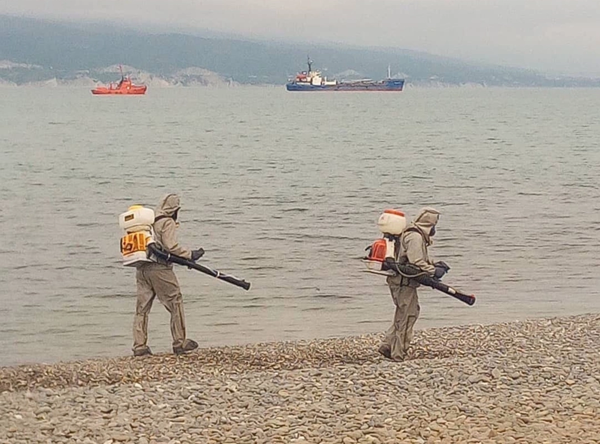 В администрации Новороссийска прокомментировали снимок с людьми в защитных костюмах на городском пляже, которые, как предположил автор фотографии, «дезинфицровали гальку».