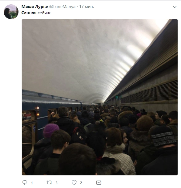 В соцсетях пишут, что на соседних станциях — «Сенная» и «Гостиный двор» — началась сильная давка.