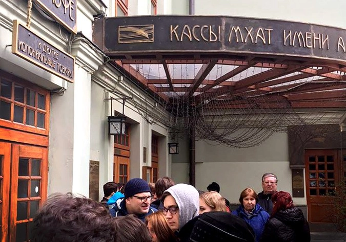 Однако незадолго до открытия касс к театру подошли перекупщики, которых охрана пропустила без очереди. Остальные люди начали возмущаться, возникла давка. Администрация МХТ в ситуацию так и не вмешалась, вызванная на место действия полиция просто навела порядок в очереди и уехала.