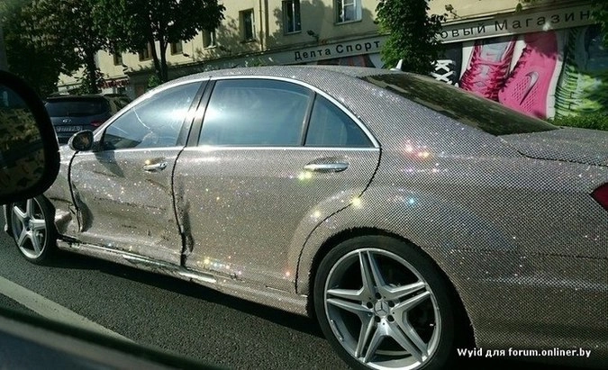 Люксовый автомобиль, покрытый россыпью страз от Swarovski, привлек внимание сотен горожан. А вот белорусскую милицию больше заинтересовала деятельность его водителя.