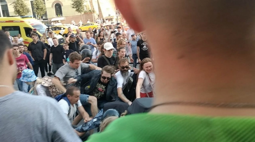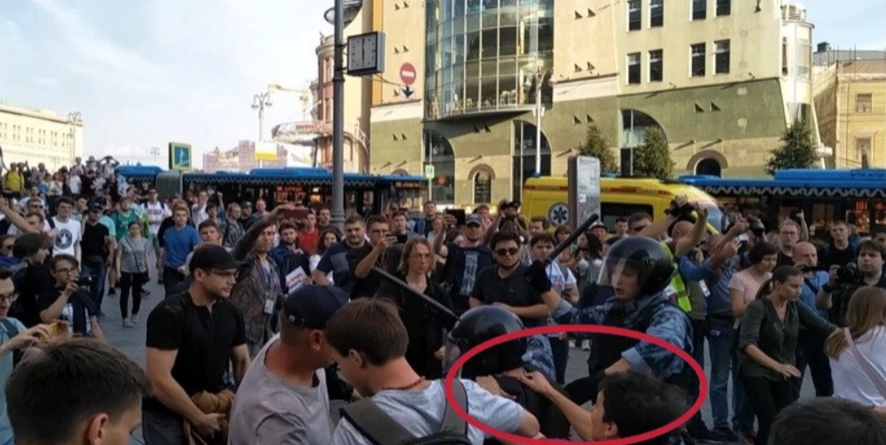 В соцсетях распространяют кадры с участием задержанных в несанкционированных акциях протеста. К примеру, на видеозаписях отчетливо видно, как Емельянов наносит удар сотруднику полиции.