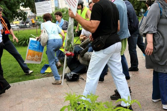 Но в понедельник, 1 июня, на участников пикета, главной «подзащитной» которого стала обвиняющаяся в соучастии в убийстве российских журналистов Надежда Савченко, напали активисты движения Serb.