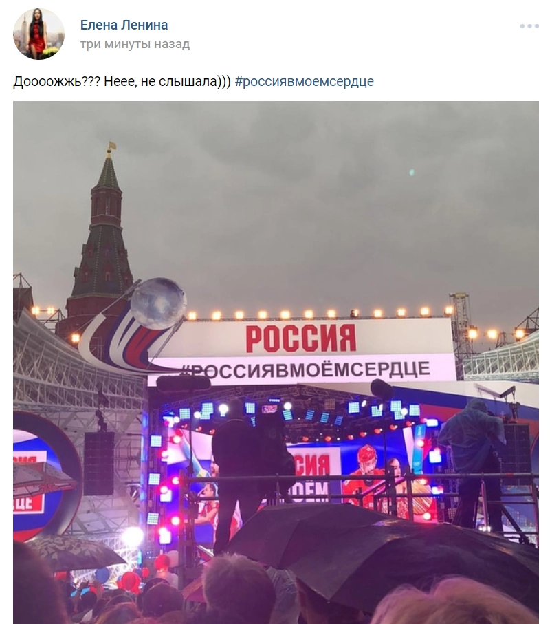 По оценкам организаторов на Манежную площадь пришли более двадцати тысяч москвичей и гостей российской столицы. И это несмотря на проливной дождь.