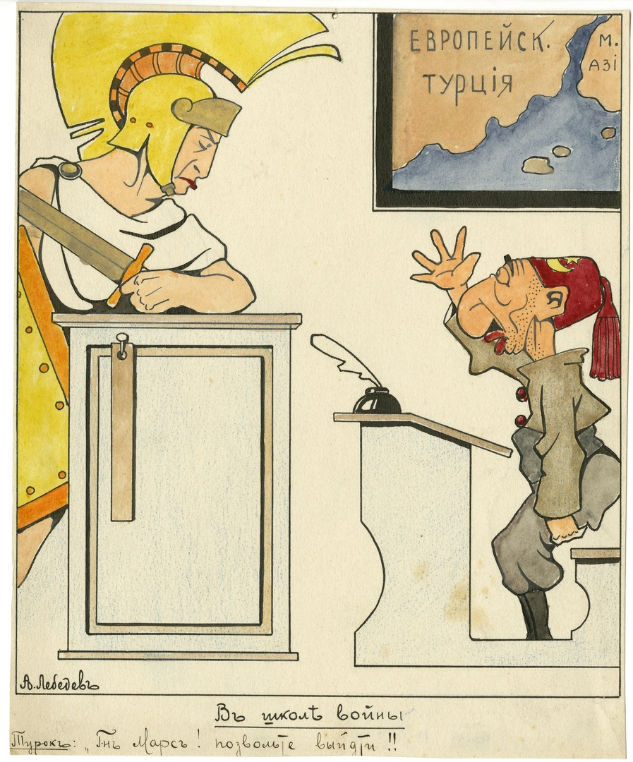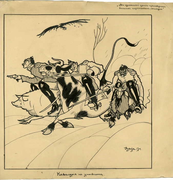 На выставке также представлены работы будущих основоположников советской карикатуры и политического плаката – В.Н. Дени (Денисова) и Д. С. Моора (Орлова), посвященные не только военным событиям, но и внутренним проблемам страны.