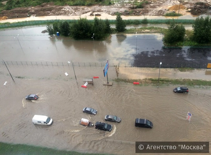 Ленинский проспект в российской столице ушел под воду в результате обрушившегося на этот район города дождя.