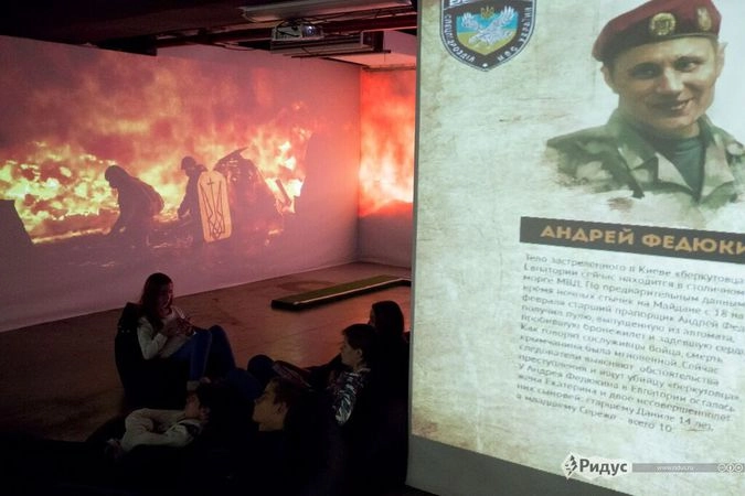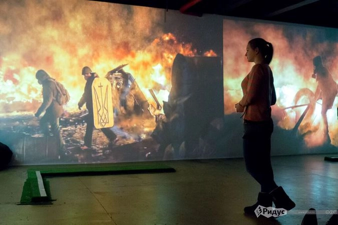 Главными героями инсталляции стали сотрудники спецподразделения «Беркут», которым, несмотря на бездействие властей Украины, пришлось в одиночку противостоять толпам радикалов. Посетителям показали специально обработанные для интерактивной выставки фотографии, которые оживут на огромных экранах 7×3 метра.