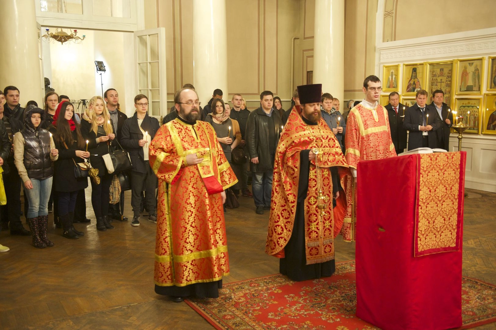 После возложения цветов, в домовом храме мученицы Татианы МГУ имени Ломоносова прошла панихида по жителям Одессы, Краматорска и Славянска, которые погибли от рук украинских националистов.