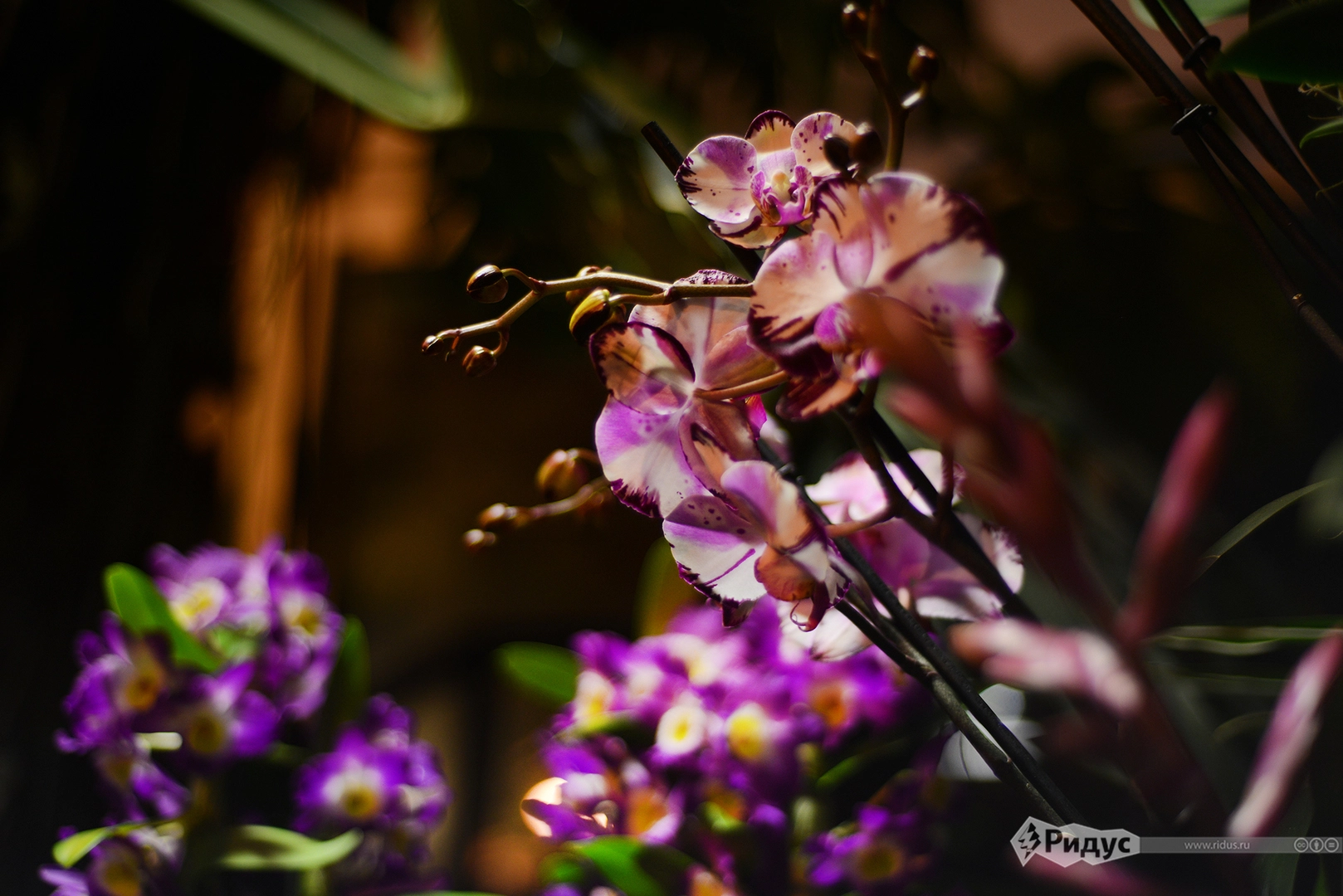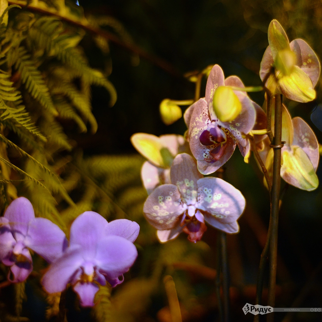 Некоторые орхидеи выставлены в отдельной витрине, другие заботливо посажены среди папоротников, третьи сведены в дизайнерские инсталляции, составленные художниками-флористами с добавлением других растений.