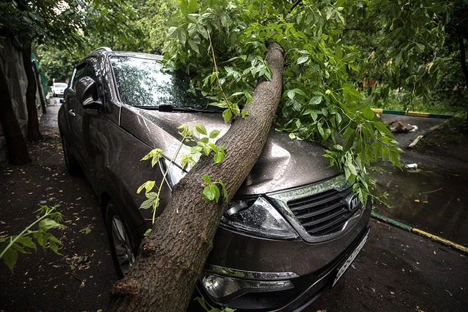 В Москве упавшие из-за непогоды деревья повредили 10 автомобилей