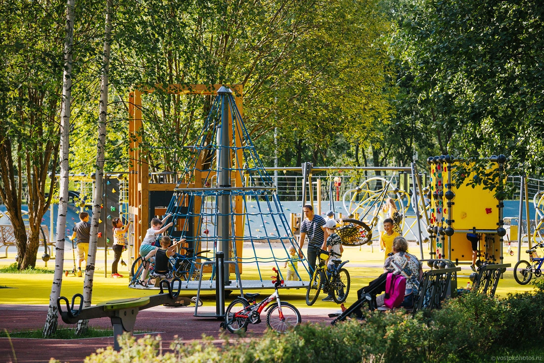 12. Больше всего интереса представляет спортивный кластер парка. Именно сюда спешат все журналисты и блогеры. Пока я гулял по парку, заметил три съемочных группы.