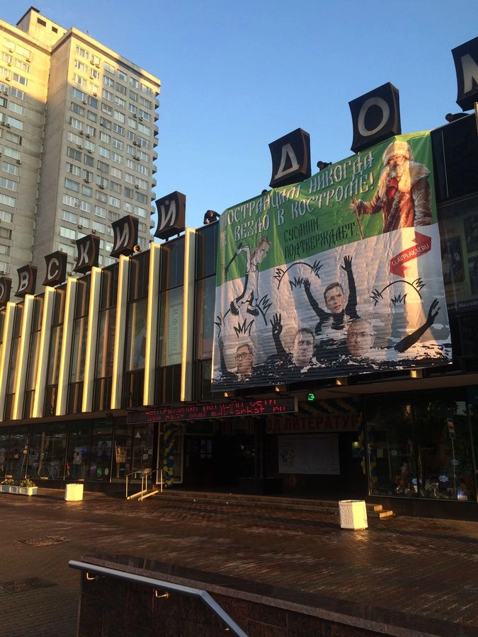 Первый плакат «Иностранцам никогда не везло в Костроме! Сусанин подтверждает» был вывешен, по традиции, напротив редакции радиостанции «Эхо Москвы» на Новом Арбате.