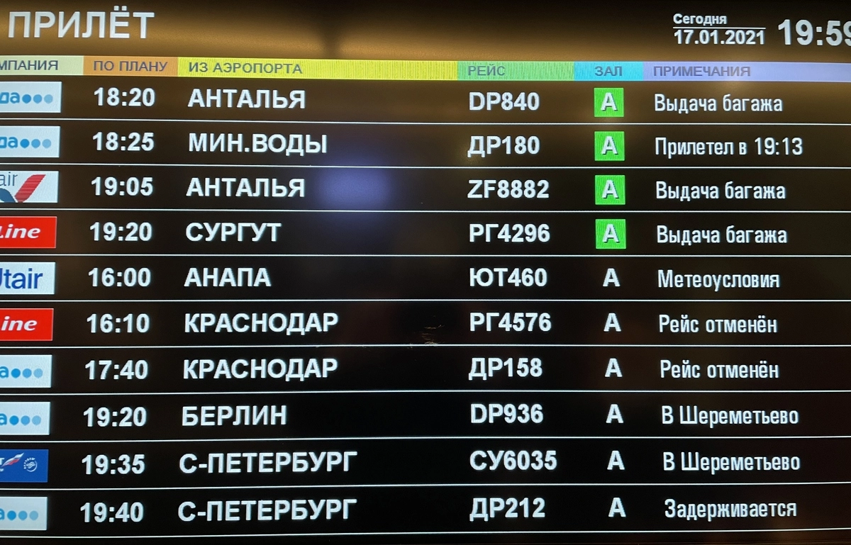 В Домодедово задержано 17 рейсов, два отменено, а в Шереметьево задержано 9 рейсов.