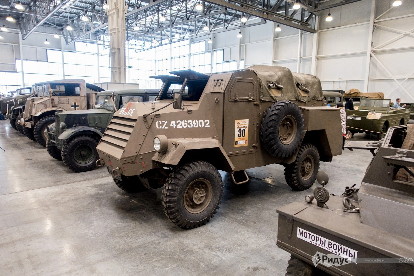 На три дня, вплоть до 20 марта, один из залов выставочного центра заполнили уникальные экспонаты — «моторизированные участники» Второй мировой войны — танки, внедорожники, бронетранспортеры, мотоциклы, грузовики, танковые эвакуаторы и прочий военно-технический антиквариат.