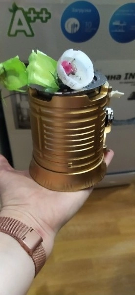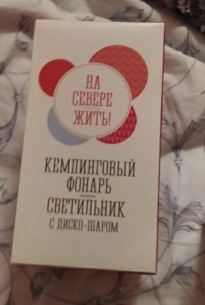 В составе подарка в том числе был складной кемпинговый фонарь с диско-шаром.