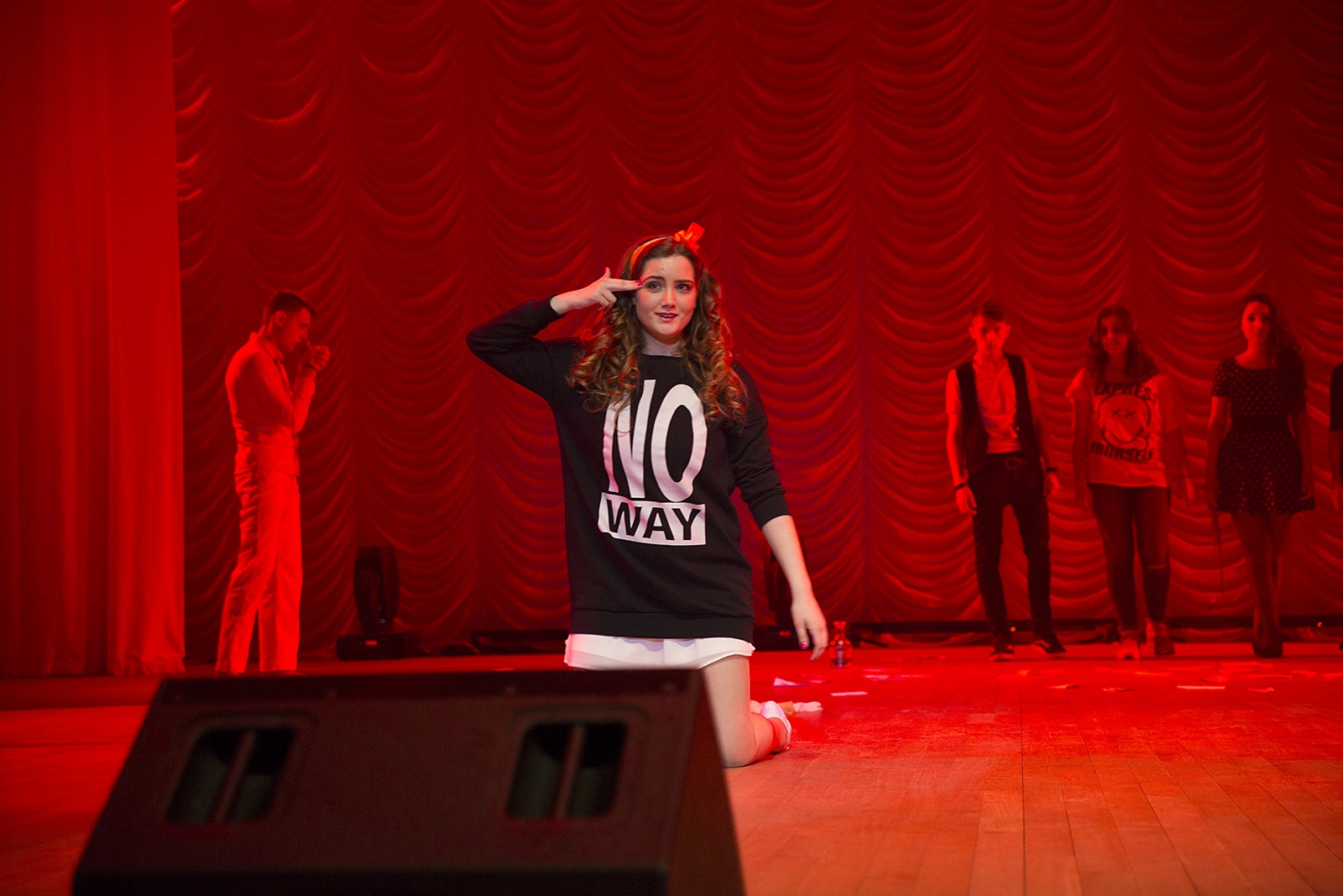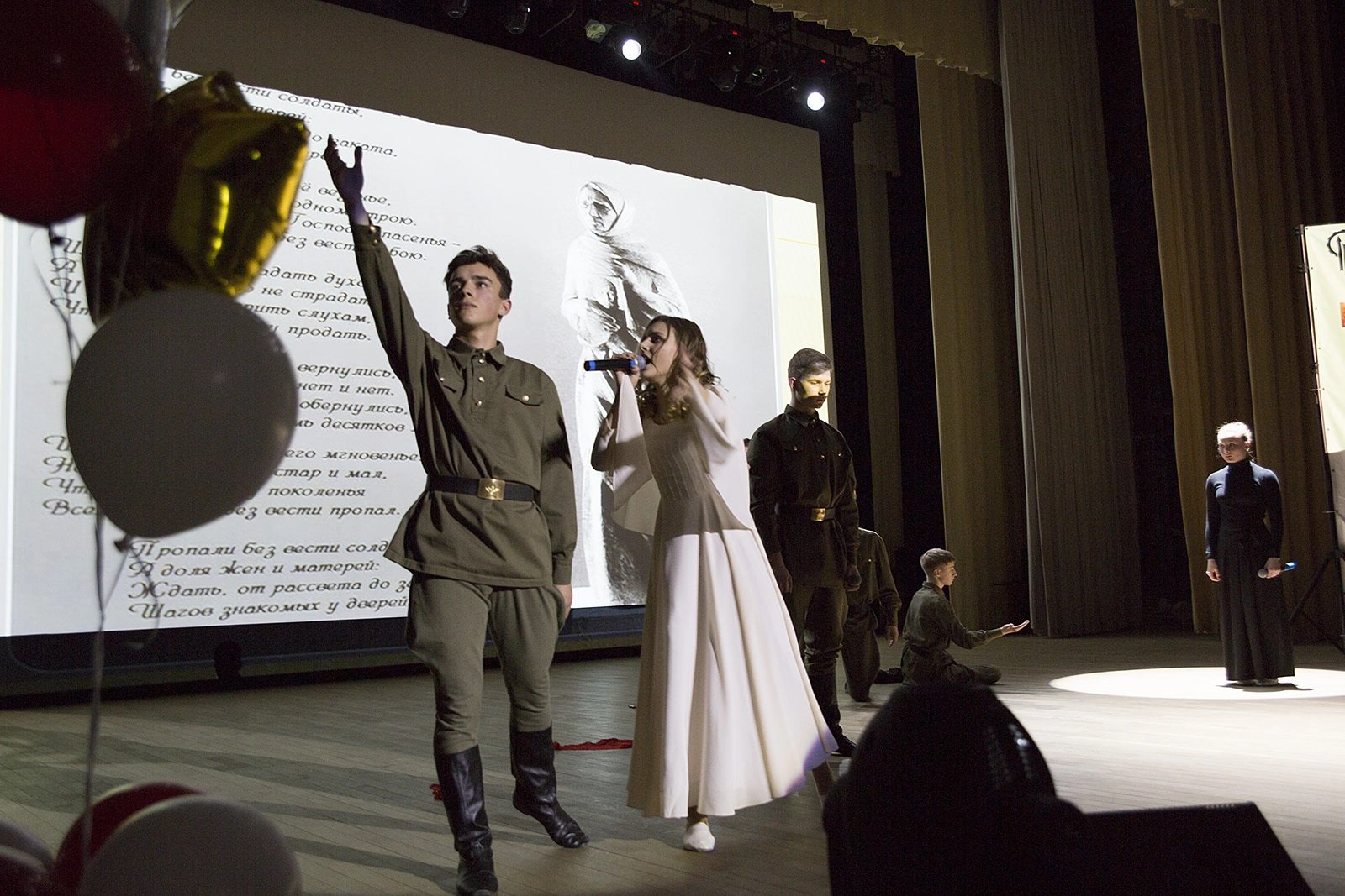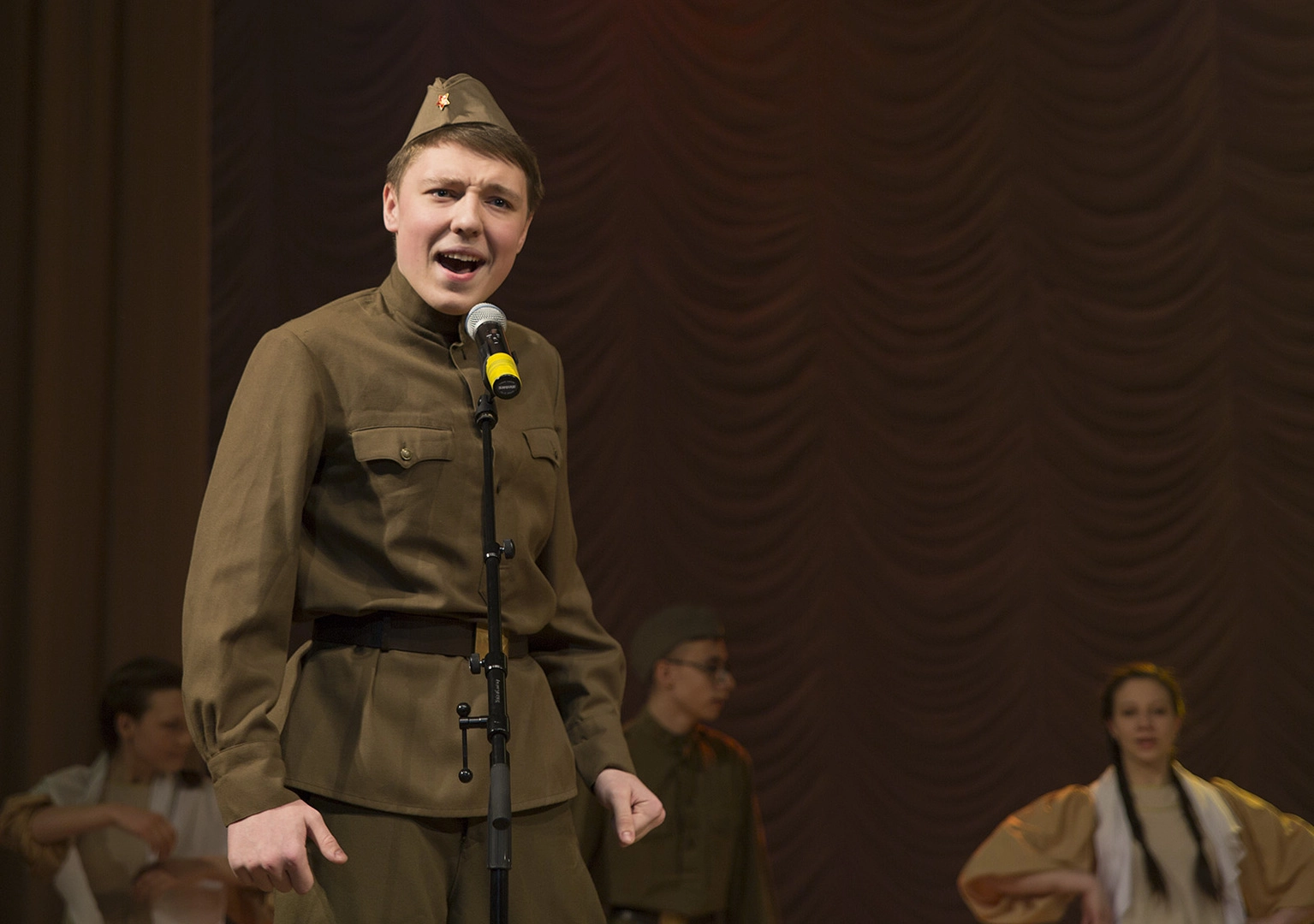 Самый любимый зрителями конкурс - актёрское мастерство. Участники должны обыграть наиболее затронувшую их социальную проблему в виде мини-спектакля. О человеческих пороках, о последствиях абортов, о любви к родителям. Но больше всего на этот раз было номеров о войне: неудивительно - 70-летие Победы нынче.