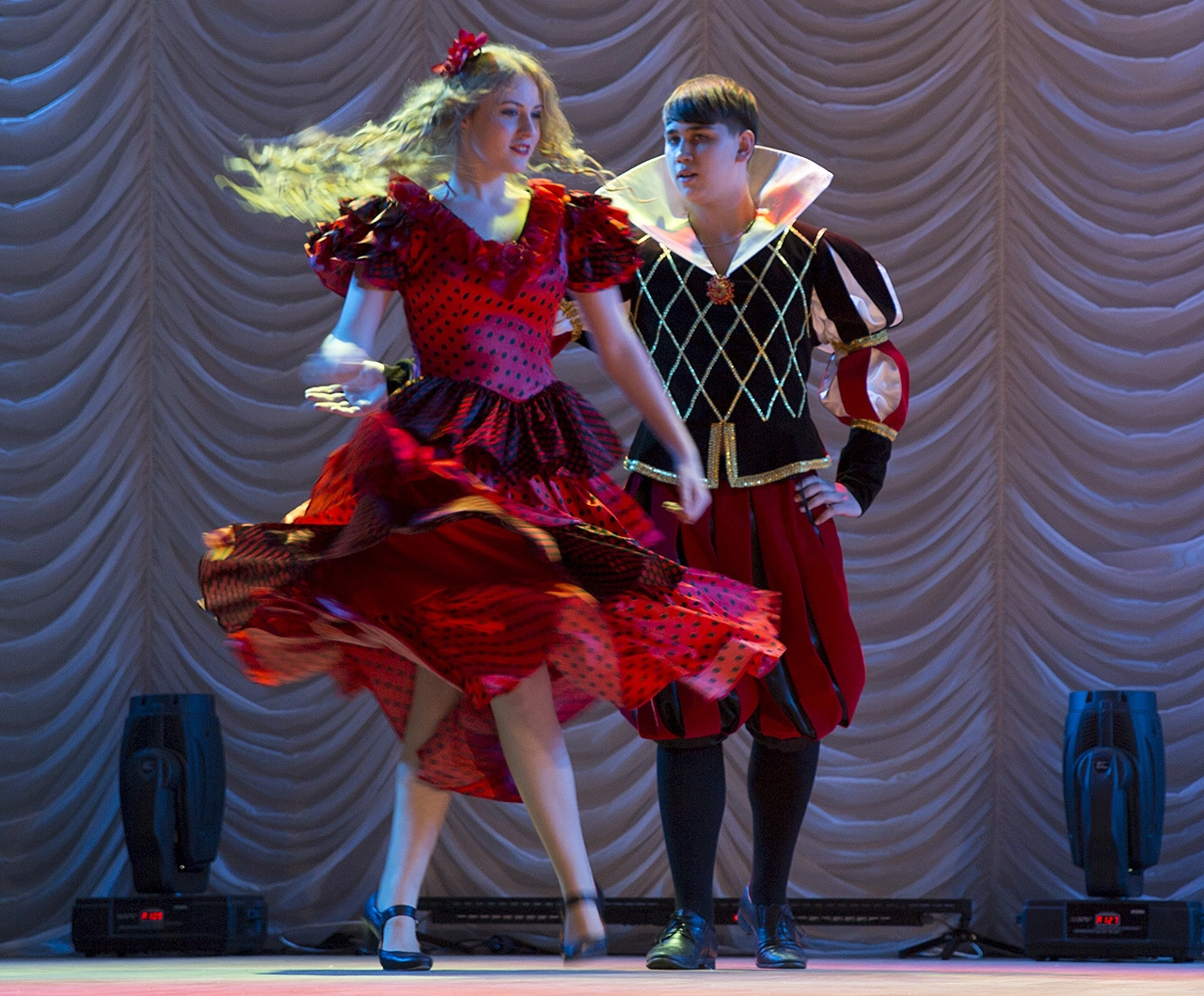 Трагизм просто зашкаливал. Пара из Вороново изобразила детей войны, а ребята из Киевского показала наказание за грехи.