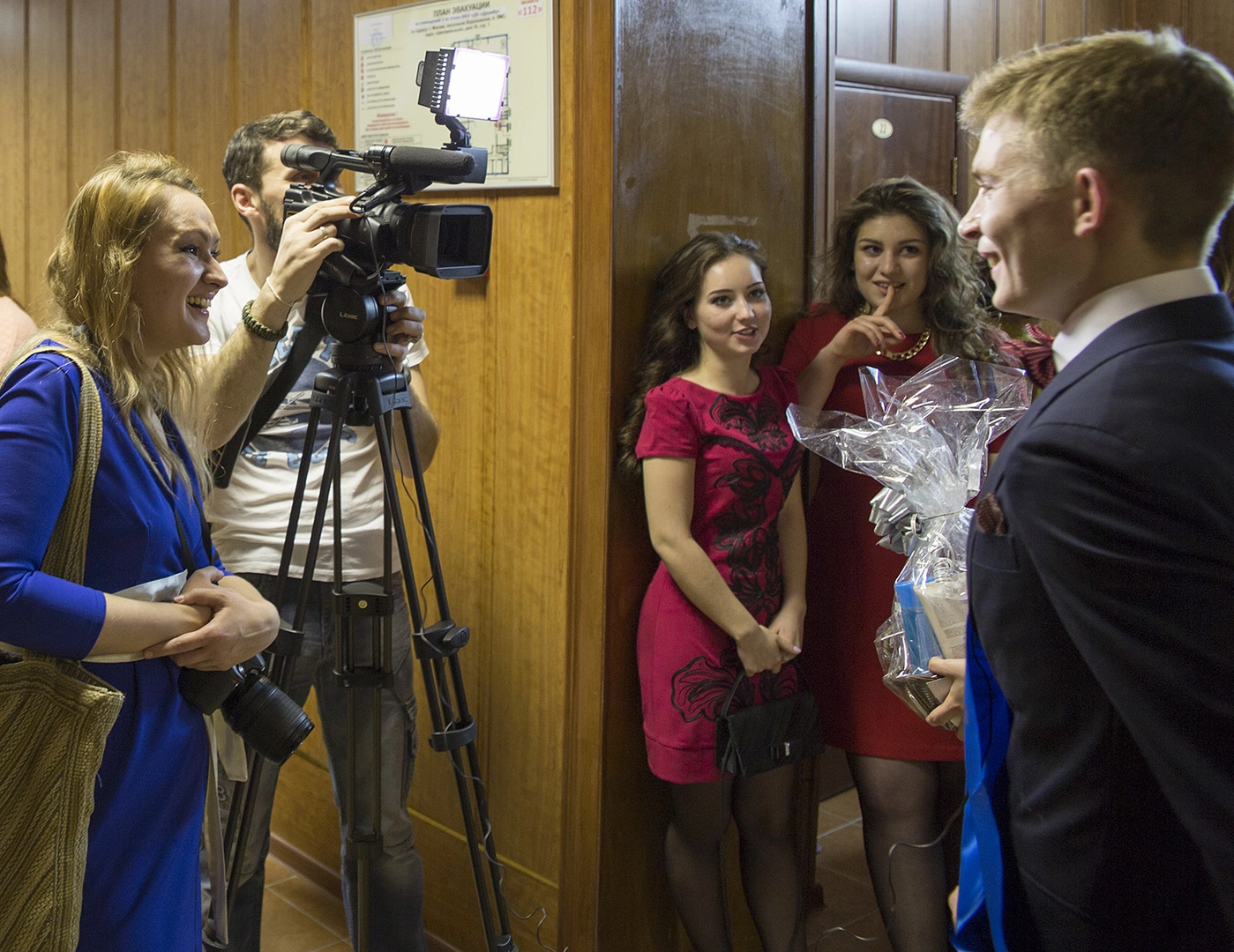 Фотографы и телеоператоры, сталкиваясь лбами, окружили и давай снимать. Всё получилось так неожиданно, что я забыл что у меня есть вспышка... Короче, этот наглый крендель заставил свою девушку под прицелами камер несколько раз повторить в микрофон на весь зал, что она “Согласна!"