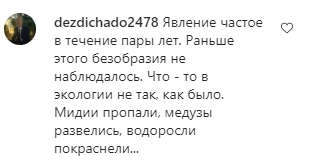 В комментариях под видео люди написали, что уже неоднократно видели подобное явление, но почему-то только недавно на него обратили внимание. Другие же отметили, что покрасневшую воду стали замечать только пару лет назад, что является следствием нарушений в экологии.