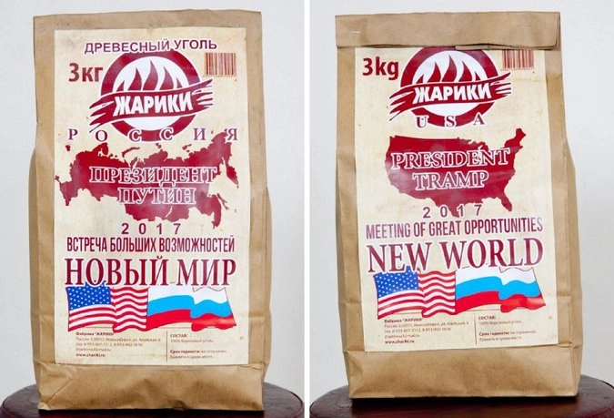 Как сообщает novosib-room, директор компании сделал подобный маркетинговой ход, так как искренне верит, что встреча нового президента США с Путиным определит развитие всего мирового сообщества. Ранее компания уже выпускала уголь в упаковках, которые гласили: «Обамавуд — кривое дерево», «Россия — Президент» и «Грязная фрау Меркель».