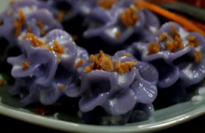 Тройной фарш из свинины, телятины и лосятины вполне зауряден. От привычных всем пельменей несколько отличается рецепт теста – с использованием измельченных желез глубоководного светящегося анчоуса. Железы добавляются исключительно ради необычного внешнего вида блюда: когда эти пельмени подают при слабом освещении, они светятся. При дневном свете они имеют синеватый цвет, сообщает MENU.RU