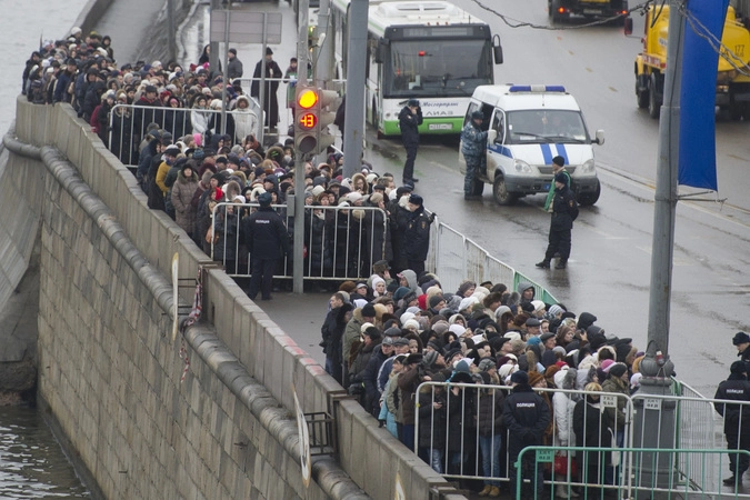 Очередь охраняют полторы тысячи полицейских, а также обеспечивают 160 волонтеров. После Москвы Дары волхвов отправятся 13 января в Петербург, а затем в Минск и Киев.