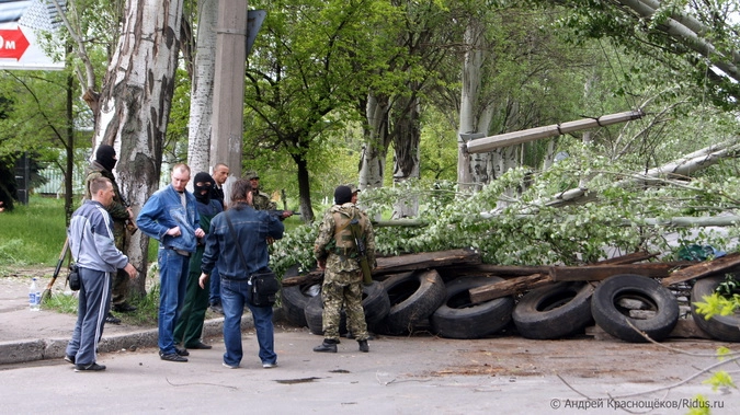 Спецкор «Ридуса» Андрей Краснощеков: «В Славянске сейчас наблюдается затишье после грозы. И в переносном, и в буквальном смысле. Ведь последние два часа шумел ливень. Тем временем, украинские силы закрепились на ряде блокпостов, на окраине города, но ни в один из участков центра, прилегающих к нему улиц они не проникли. Горожане за считанные 2-3 часа возвели десятки новых баррикад, не только на основных шоссе, но и в переулках. Хочу подчеркнуть, что постройкой часто весьма «дилетантских» рубежей занимаются не ополченцы в камуфляже, а жители самых разных возрастов. Там, где не хватает крупного стройматериала, металлолома, пилят деревья, валят их на проезжую часть».
