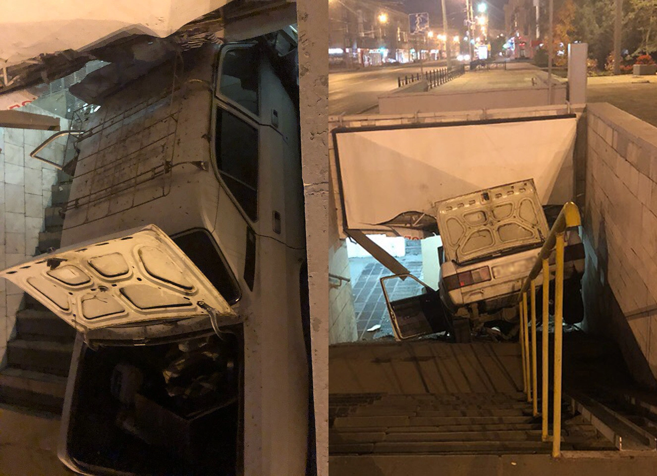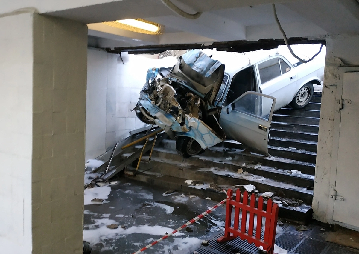 В Омске «Волга» на полном ходу въехала в подземный переход. Авария произошла в 6 утра (3:00 МСК).